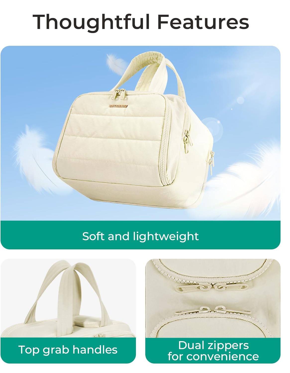 Features comfortable carry handles and a compact yet roomy structure—ideal for handbags, suitcases, or carry-on luggage.