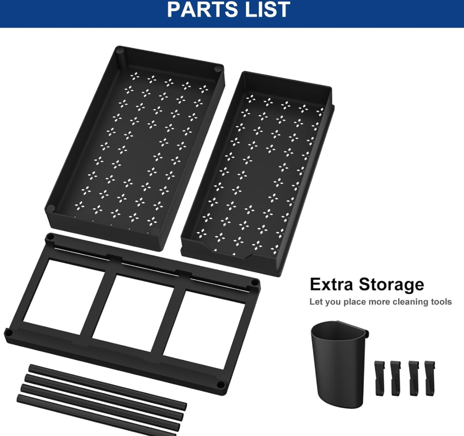 Multi-Purpose 2 Tier Under Sink Organizer with Hooks and Sliding Drawer